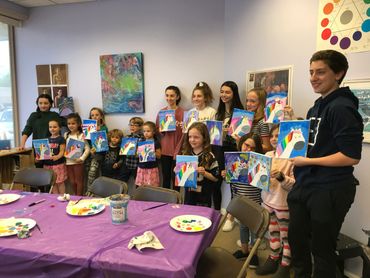We specialize in girl scout art badge classes and large fund raiser art parties as well (up to 80 guests at your location)!